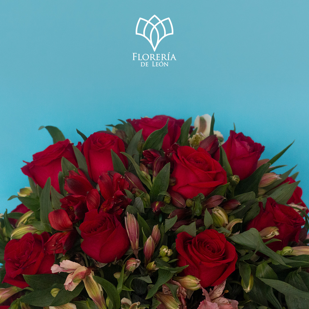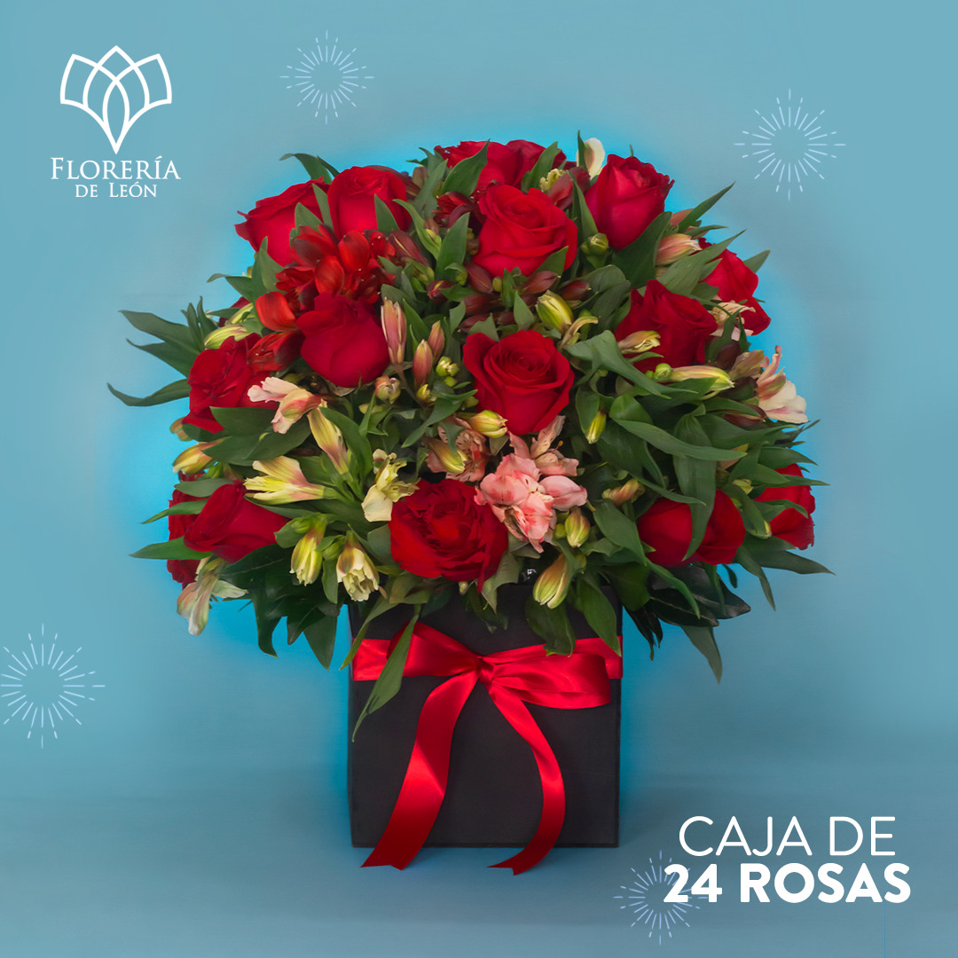 Bonita caja de MDF color negro con 24 rosas en tono rojo.