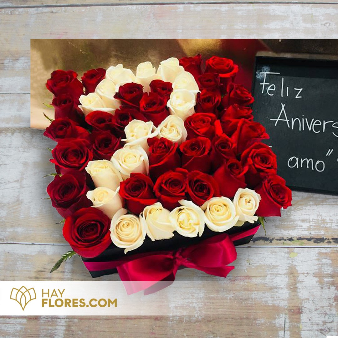 Bella caja con Aproximadamente 50 Rosas, Puede llevar el número que gustes