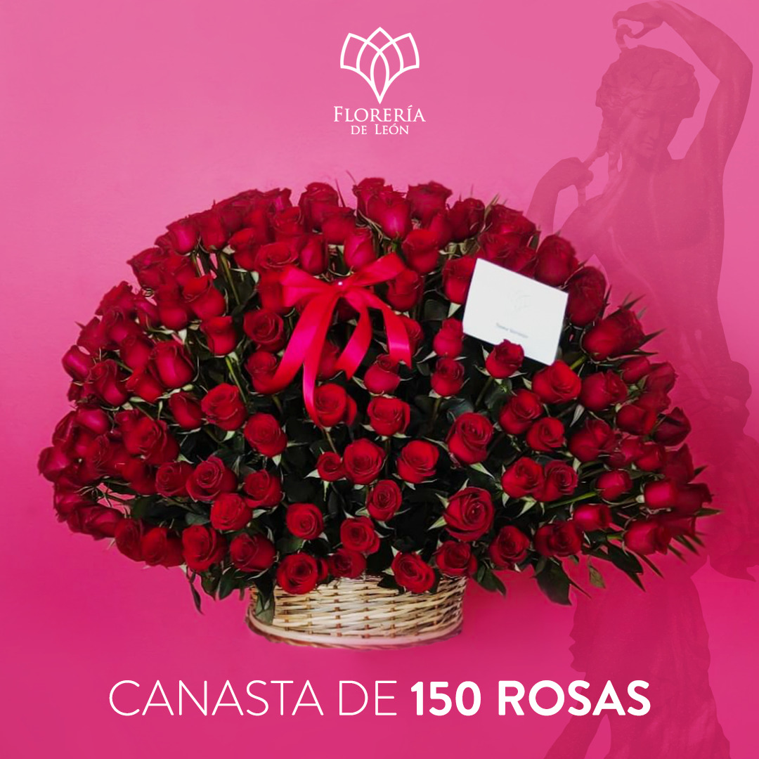 Dale lo mejor de tí con esta bonita canasta de 150 rosas.