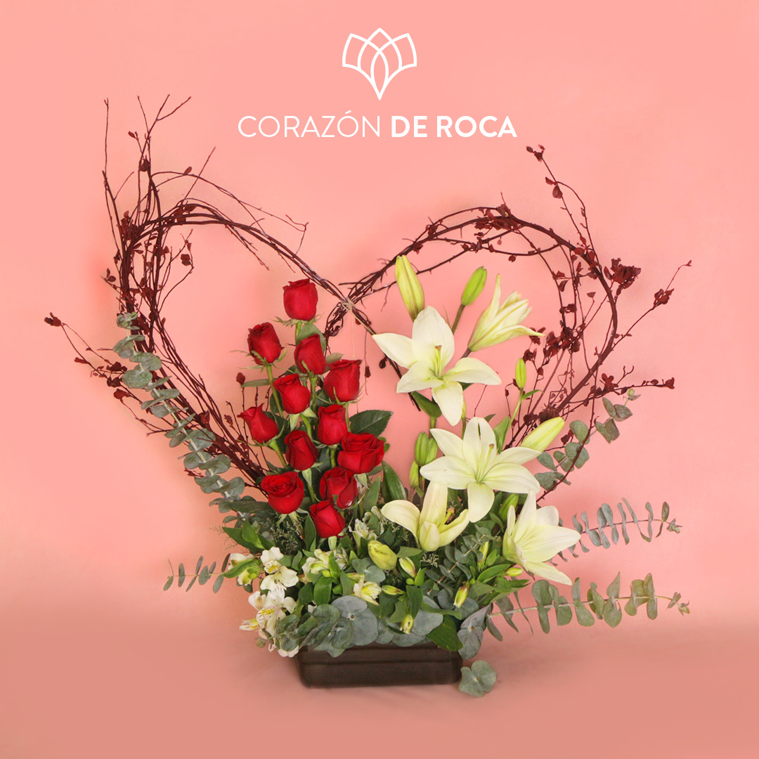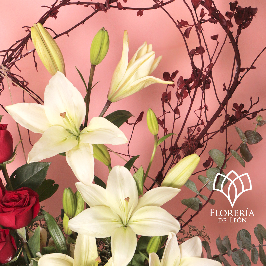 Nuestra canasta incluye el arreglo floral de algunas de las más brillantes rosas rojas a un lado de las lilys blancas más bonitas. Creando la unión entre dos tipos de flores diferentes que podrían componer una poderosa combinación.
