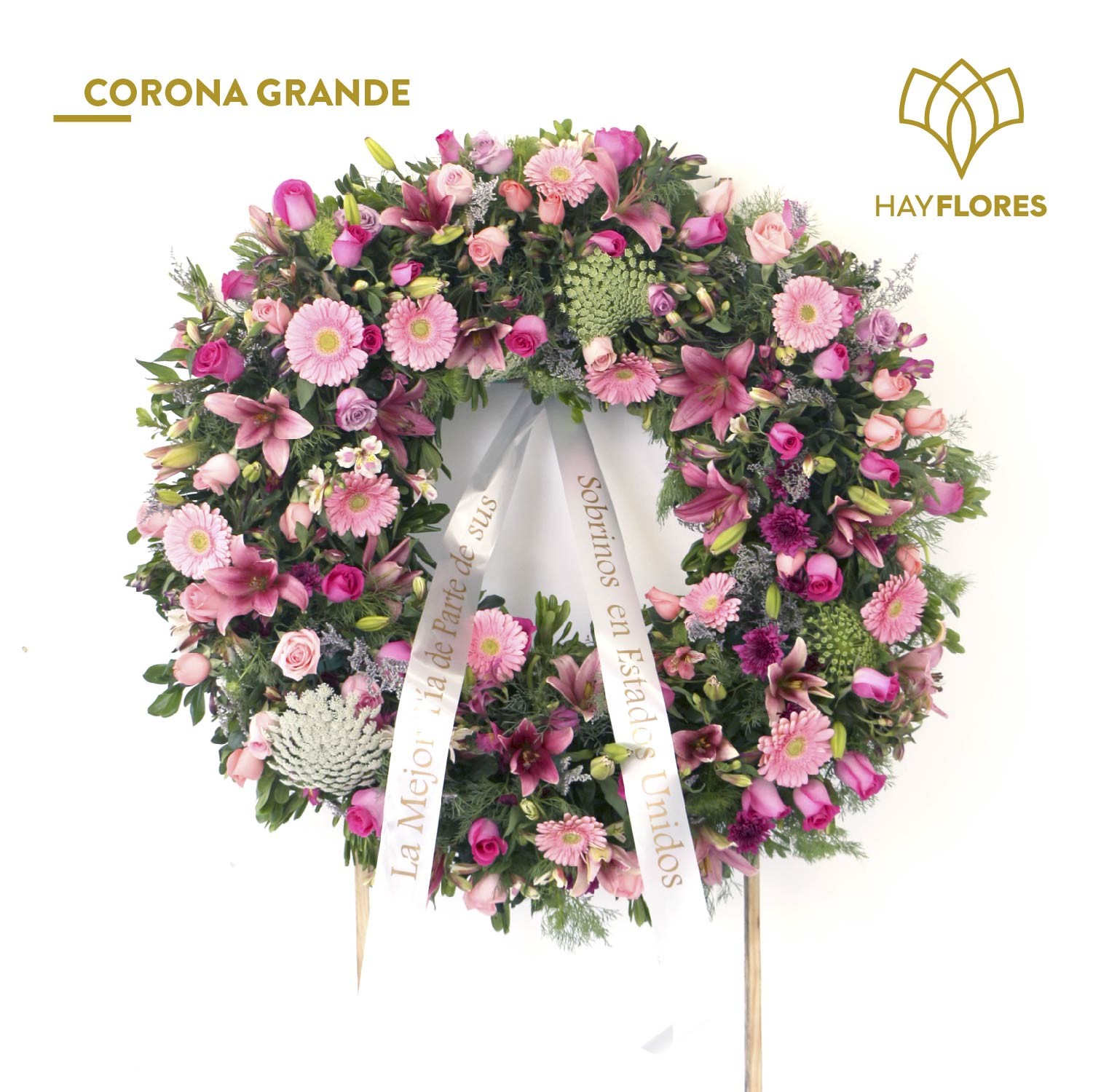 Corona de flores rosas grande para ese ser querido que merece tanto.