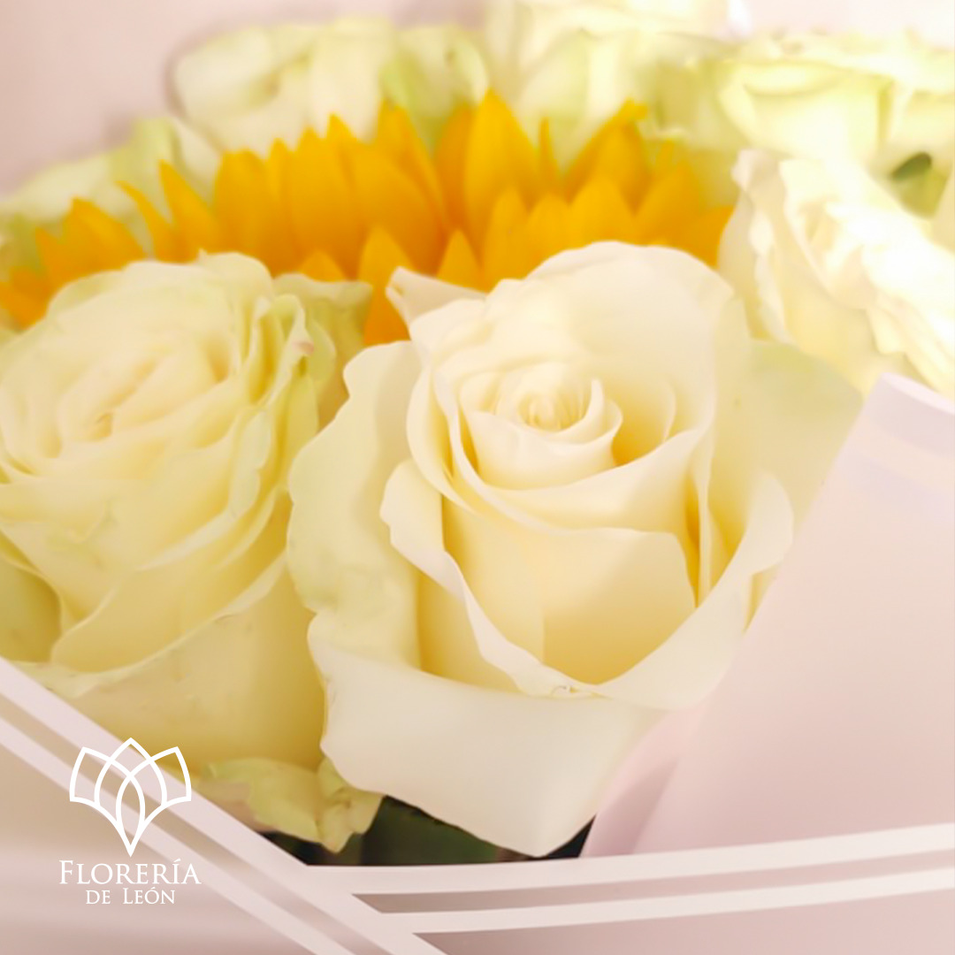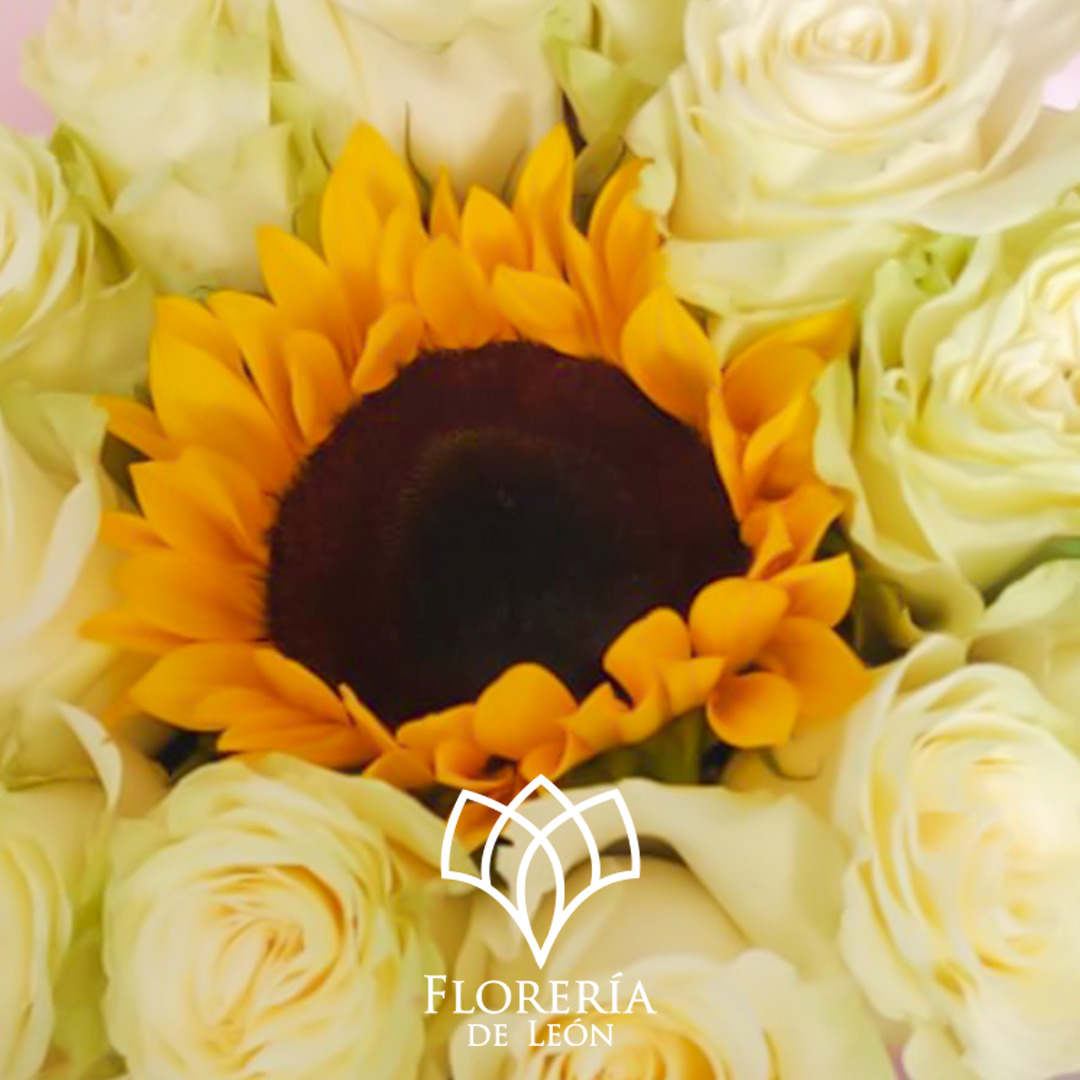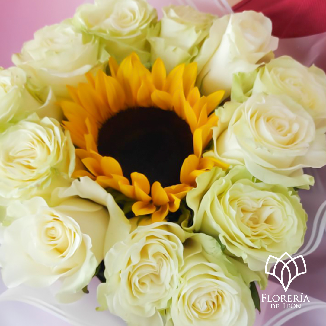 Ramo con rosas orbitando al rededor de un bello girasol.
