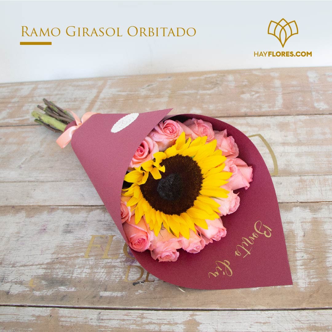 Ramo con rosas orbitando al rededor de un bello girasol.