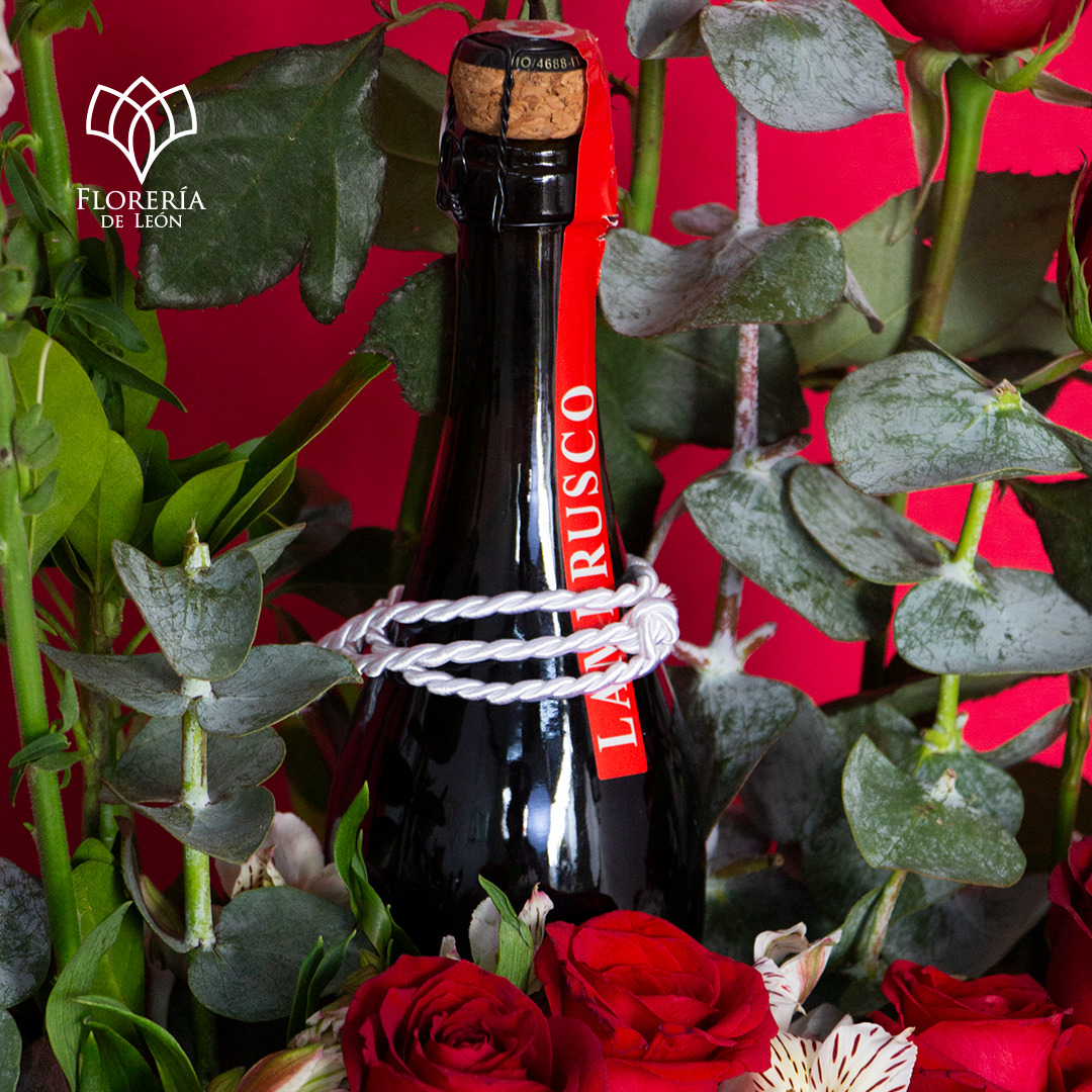 Rosas con Follajes finos (incluye Botella Lambrusco Dolce Amore )