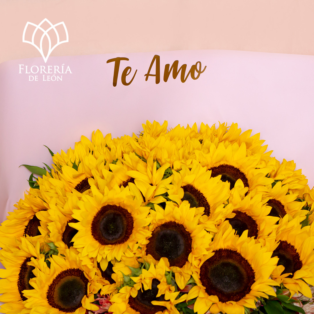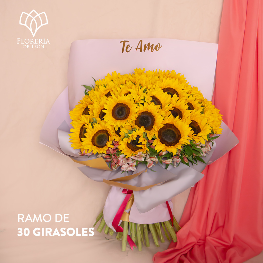 Bonito y visto ramo de 30 girasoles con papel importado fino francés.