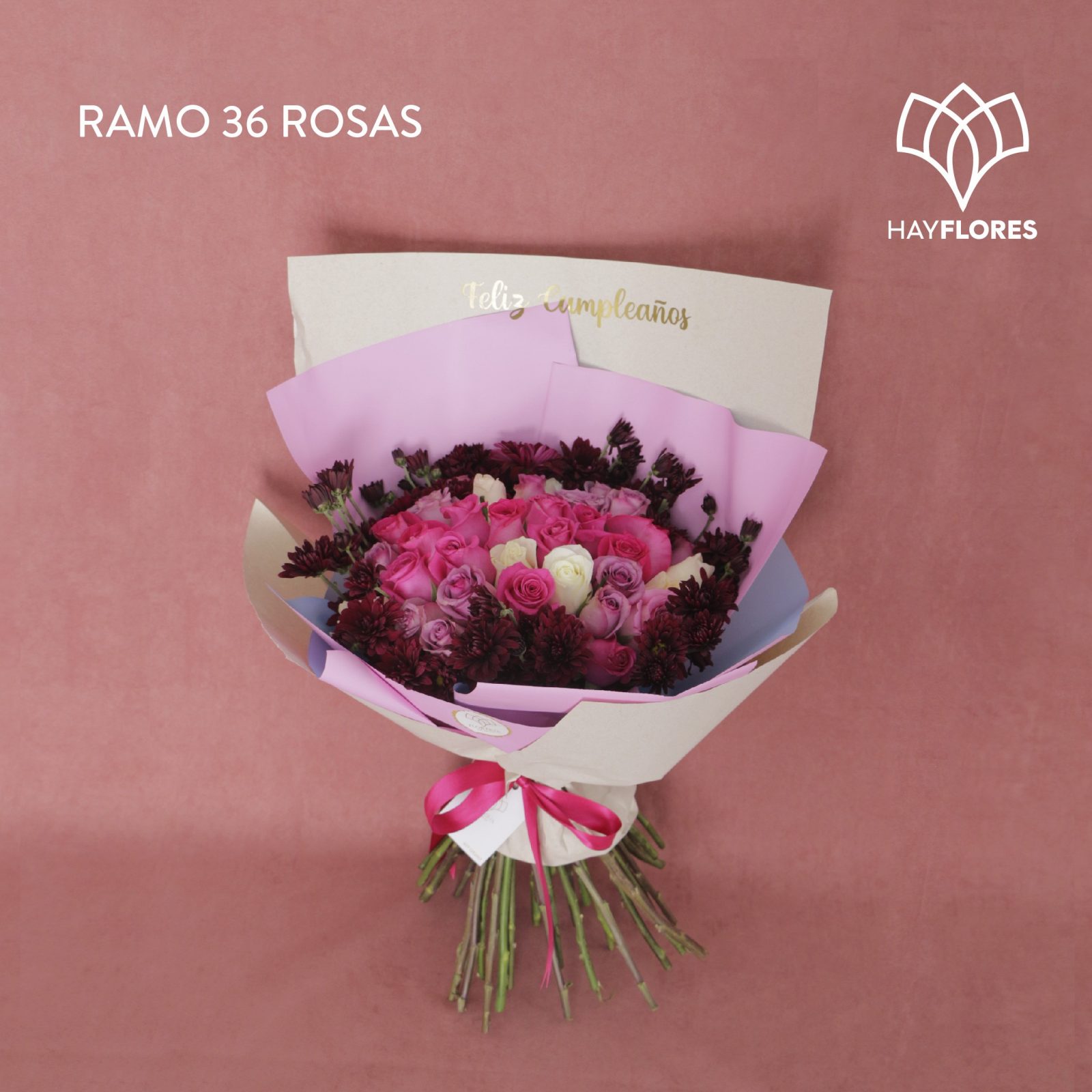 Ramo de 36 rosas en tonos pastel perfecto para desear feliz cumpleaños, felicitar a mamá, desear un bonito día o celebrar la amistad.