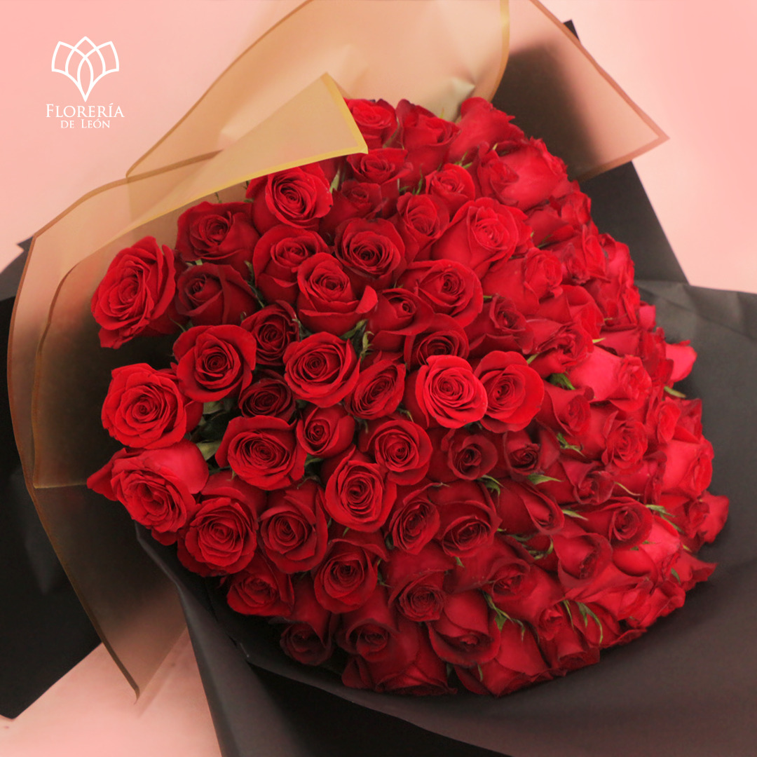 100 rosas rojas van a decir “Te quiero” como un ejército de pétalos enamorados. Te harán sentir cien mariposas revoloteando y expresando el único sentimiento que todos queremos escuchar, pero pocos sabemos cómo decirlo. Apropiado para celebrar aniversarios, generar conmoción en graduaciones y provocar lágrimas en cumpleaños.