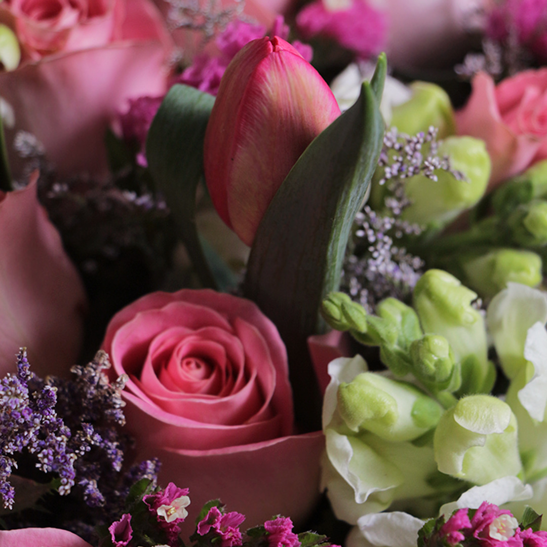 Las rosas y los tulipanes se combinan solo en este ramillete convirtiéndolo en una poderosa pieza de asombro, capaz de transformar cualquier actitud en alegría, ahuyentando la tristeza en un abrir y cerrar de ojos. Apropiado para celebrar aniversarios, generar conmoción en graduaciones y provocar lágrimas en cumpleaños.