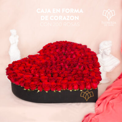 Caja 200 rosas en forma de Corazón